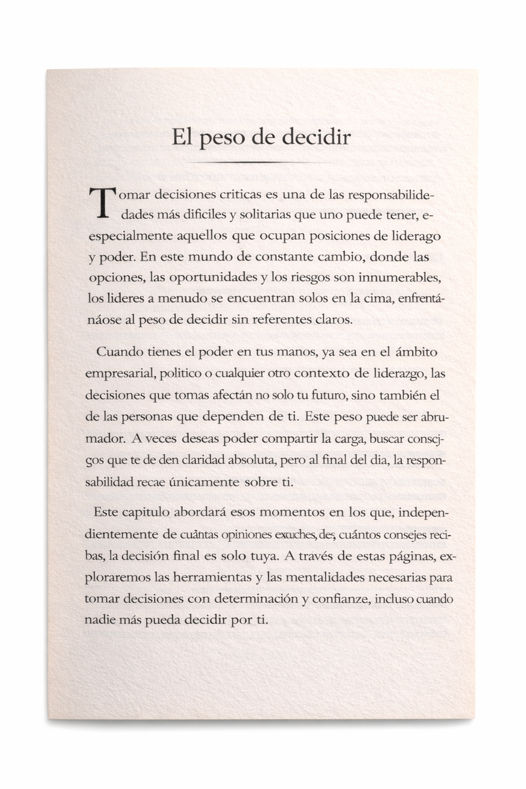 El libro que da origen a ÚNICO no es una obra motivacional, ni un manual de tácticas aisladas. Es una arquitectura de pensamiento para empresarios que comprenden que el verdadero crecimiento empieza en la identidad. A través de una reflexión profunda sobre poder, criterio e influencia, el libro establece las bases conceptuales que sostienen la escuela: decidir con claridad, liderar con estructura y construir negocio desde dentro hacia fuera. Es el punto de partida para quien entiende que el éxito sostenible exige algo más que información; exige transformación interna y dirección consciente.